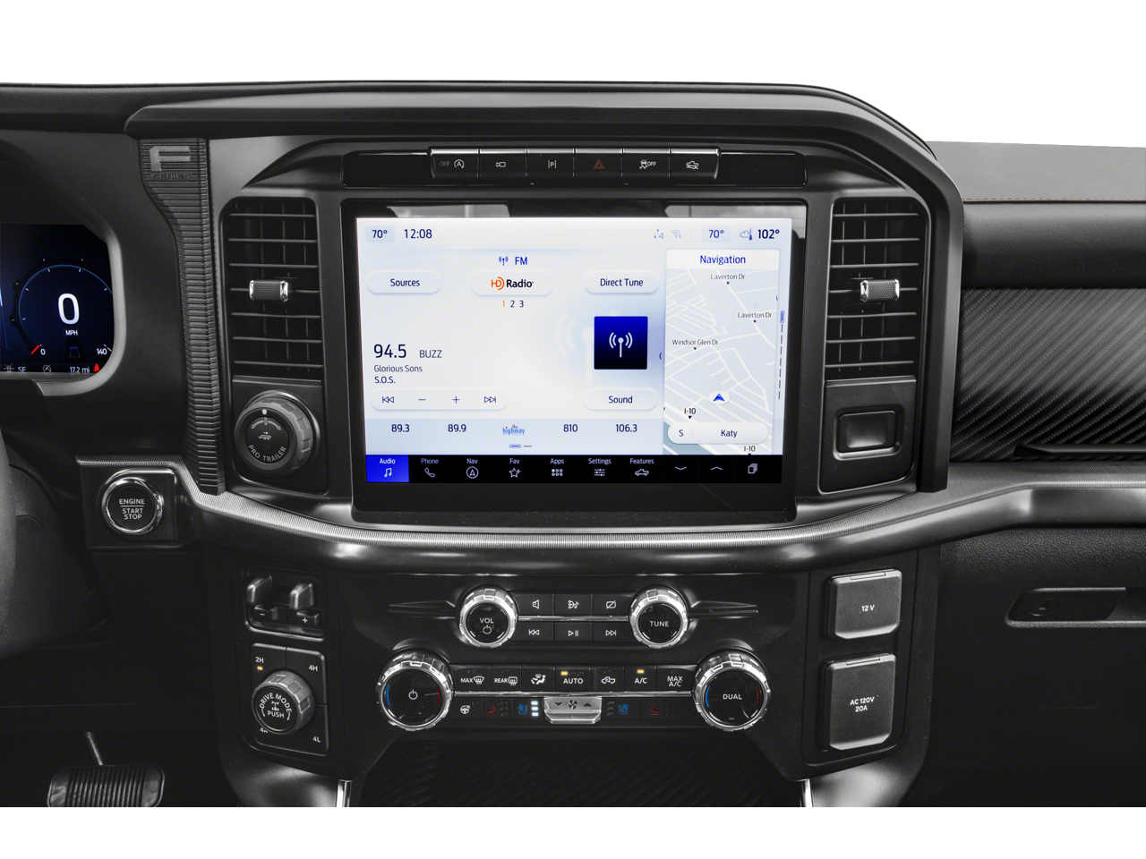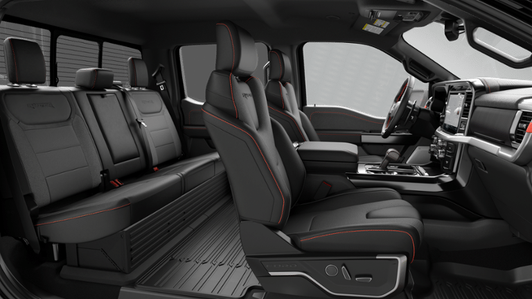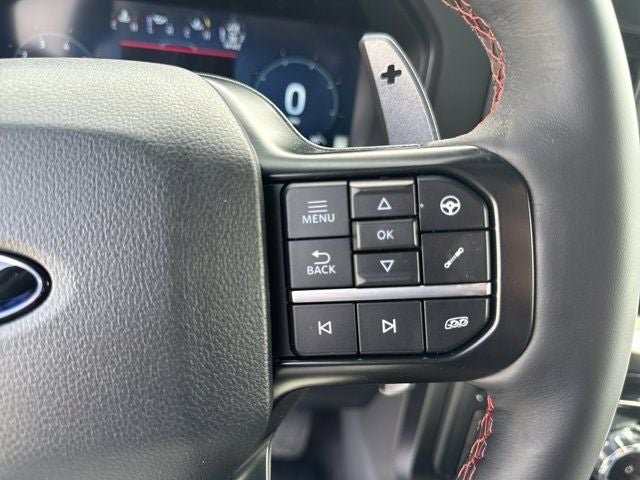 4WD, 14 Speakers, 17 Cast Aluminum Wheels, 4-Wheel Disc Brakes, ABS brakes, Adjustable pedals, Air Conditioning, Alloy wheels, AM/FM radio: SiriusXM with 360L, Auto High-beam Headlights, Auto tilt-away steering wheel, Auto-dimming door mirrors, Auto-dimming Rear-View mirror, Automatic temperature control, Brake assist, Bumpers: body-color, Compass, Delay-off headlights, Driver door bin, Driver vanity mirror, Dual front impact airbags, Dual front side impact airbags, Electronic Locking with 4.10 Axle Ratio, Electronic Stability Control, Emergency communication system: SYNC 4 911 Assist, Ford Connectivity Package (1-Year Included), Front anti-roll bar, Front Bucket Seats, Front Center Armrest, Front dual zone A/C, Front fog lights, Front reading lights, Front wheel independent suspension, Fully automatic headlights, Garage door transmitter, Heated door mirrors, Heated front seats, Heated rear seats, Heated steering wheel, Illuminated entry, Internet access capable: 5G Modem - Ford Connectivity Package, Lane Departure Warning System, Leather steering wheel, Leather Trimmed Seats, Low tire pressure warning, Memory seat, Navigation system: Connected Navigation, Occupant sensing airbag, Outside temperature display, Overhead airbag, Overhead console, Panic alarm, Passenger door bin, Passenger vanity mirror, Pedal memory, Power door mirrors, Power driver seat, Power passenger seat, Power steering, Power windows, Radio data system, Radio: B&O Unleashed Sound System by Bang & Olufsen, Rain sensing wipers, Rear reading lights, Rear step bumper, Rear window defroster, Remote keyless entry, Security system, Speed control, Speed-sensing steering, Split folding rear seat, Steering wheel memory, Steering wheel mounted audio controls, SYNC 4 with Enhanced Voice Recognition, Tachometer, Telescoping steering wheel, Tilt steering wheel, Traction control, Trip computer, Turn signal indicator mirrors, Variably intermittent wipers, Ventilated front seats, 4WD.