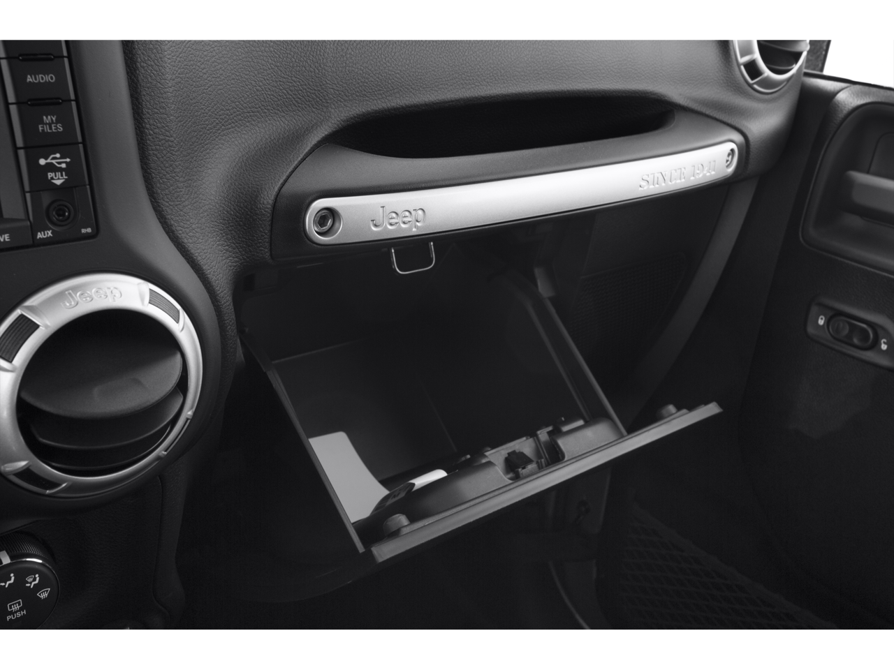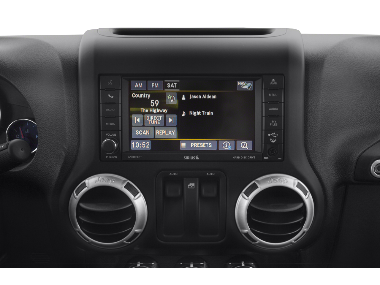 18 x 7.5 7-Spoke Polished Aluminum Wheels, 18 x 7.5 Polished Satin Carbon Wheels, 3.21 Rear Axle Ratio, 4-Wheel Disc Brakes, 40GB Hard Drive w/28GB Available, 5-Year SIRIUSXM Travel Link Service, 6.5 Touch Screen Display, 8 Speakers, ABS brakes, Air Conditioning, Alloy wheels, AM/FM radio, Anti-Spin Differential Rear Axle, Audio Jack Input for Mobile Devices, Auto-dimming Rear-View mirror, Brake assist, CD player, Class II Receiver Hitch, Cloth Bucket Seats, Compass, Connectivity Group, Driver door bin, Driver vanity mirror, Dual front impact airbags, Electronic Stability Control, Front anti-roll bar, Front Bucket Seats, Front Center Armrest w/Storage, Front fog lights, Front reading lights, Fully automatic headlights, GPS Navigation, Heated door mirrors, Heated Front Seats, Heavy Duty Suspension w/Gas Shocks, Illuminated entry, Integrated roll-over protection, Leather steering wheel, Leather Wrapped Steering Wheel, Low tire pressure warning, Occupant sensing airbag, Outside temperature display, Panic alarm, Passenger door bin, Passenger vanity mirror, Power door mirrors, Power steering, Power windows, Quick Order Package 24G, Radio data system, Radio: Uconnect 130 AM/FM/CD/MP3, Radio: Uconnect 430N CD/DVD/MP3/HDD/NAV, Rear anti-roll bar, Remote keyless entry, Remote Start System, Remote USB Port, Security system, SIRIUSXM Travel Link, Speed control, Steering wheel mounted audio controls, Tachometer, Tilt steering wheel, Tire Pressure Monitoring Display, Traction control, Trailer Tow Group, Trailer Tow w/4-Pin Connector Wiring, Trip computer, Variably intermittent wipers, Vehicle Information Center.