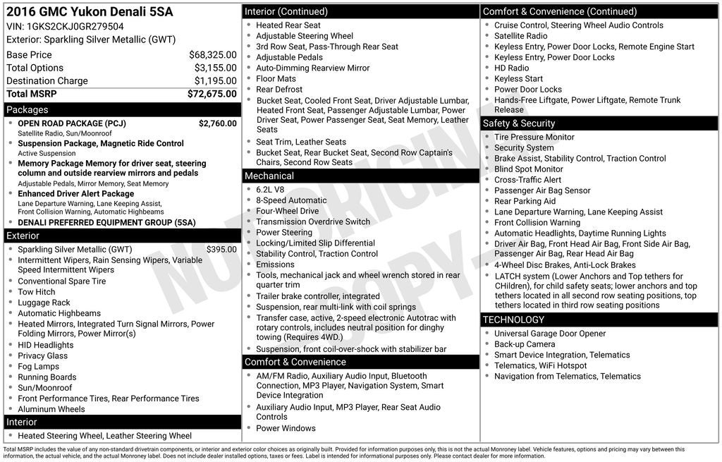 - Vehicle Name: GMC Yukon