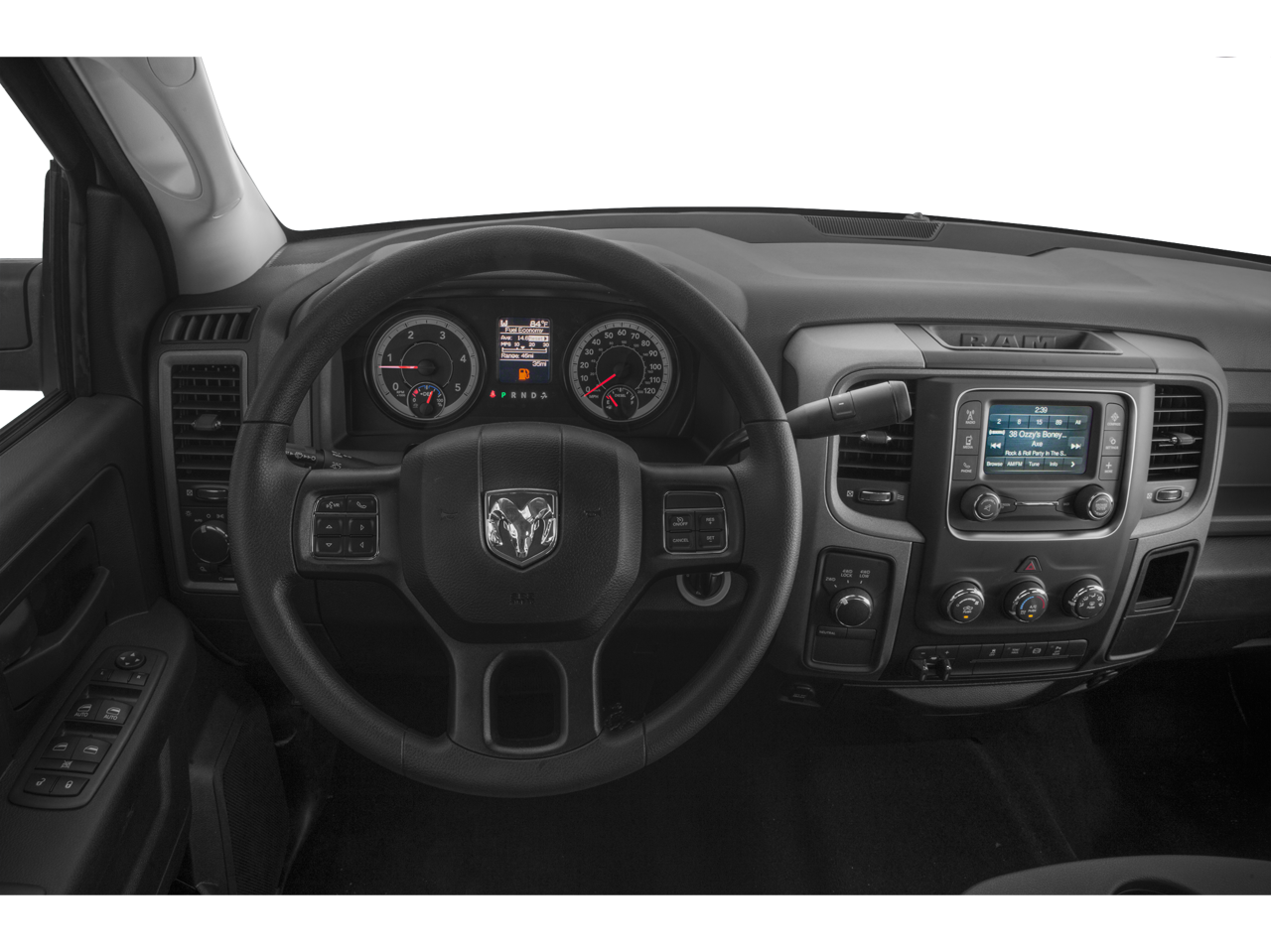 17 x 7.5 Steel Styled Wheels, 180 Amp Alternator, 3.73 Axle Ratio, 4-Wheel Disc Brakes, 40/20/40 Split Bench Seat, 6 Speakers, ABS brakes, Air Conditioning, AM/FM radio, Auto-dimming Rear-View mirror, Black Exterior Mirrors, Brake assist, Center Hub, Delay-off headlights, Driver door bin, Dual front impact airbags, Dual front side impact airbags, Electronic Stability Control, Electronically Controlled Throttle, Exterior Mirrors w/Heating Element, Front anti-roll bar, Front Armrest w/Cupholders, Front Center Armrest, Fully automatic headlights, Heated door mirrors, Heavy Duty Snow Plow Prep Group, Heavy Duty Vinyl 40/20/40 Split Bench Seat, Hemi Badge, Locking Tailgate, Low tire pressure warning, Manual Adjust Seats, Media Hub (USB, AUX), Next Generation Engine Controller, Occupant sensing airbag, Overhead airbag, ParkView Rear Back-Up Camera, Passenger door bin, Power door mirrors, Power steering, Power windows, Quick Order Package 26A Tradesman, Radio data system, Radio: 3.0, Rear Folding Seat, Rear step bumper, Speed control, Tachometer, Tilt steering wheel, Tip Start, Traction control, Variably intermittent wipers, Vendor Painted Cargo Box Tracking, Voltmeter.