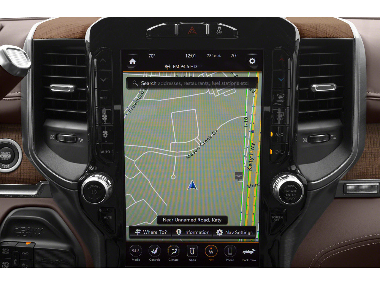 1-Year SiriusXM Guardian Trial, 10 Speakers, 115V Auxiliary Rear Power Outlet, 12 Touchscreen Display, 17 Speaker High Performance Audio, 2 Way Rear Headrest Seat, 20 x 8.0 Polished Aluminum Wheels, 220 Amp Alternator, 3.73 Axle Ratio, 4 Way Front Headrests, 4-Wheel Disc Brakes, 5th Wheel/Gooseneck Towing Prep Group, ABS brakes, Active Noise Control System, Adaptive Cruise Control w/Stop, Adjustable pedals, Air Conditioning, Alloy wheels, AM/FM radio: SiriusXM, Anti-Spin Differential Rear Axle, Apple CarPlay, Apple CarPlay/Android Auto, Audio memory, Auto High-beam Headlights, Auto-dimming Rear-View mirror, Automatic temperature control, Blind Spot & Cross Path Detection, Body Color Bumper Group, Brake assist, Bucket Seats, Bumpers: chrome, Center Hub, Clearance Lamps, Compass, Delay-off headlights, Deployable Bed Step, Disassociated Touchscreen Display, Driver door bin, Driver vanity mirror, Dual front impact airbags, Dual front side impact airbags, Electronic Stability Control, Electronically Controlled Throttle, Emergency communication system: SiriusXM Guardian, Folding Flat Load Floor Storage, Front anti-roll bar, Front Bucket Seats, Front Center Armrest w/Storage, Front dual zone A/C, Front fog lights, Front Performance Tuned Shock Absorbers, Front reading lights, Front Seat Back Map Pockets, Full Length Premium Upgraded Floor Console, Full Speed Forward Collision Warning Plus, Fully automatic headlights, Garage door transmitter, Genuine wood console insert, Genuine wood dashboard insert, Genuine wood door panel insert, Google Android Auto, GPS Antenna Input, GPS Navigation, HD Radio, Heated door mirrors, Heated Front Seats, Heated front seats, Heated rear seats, Heated Second Row Seats, Heated Steering Wheel, Heated steering wheel, High Back Seats, Hill Descent Control, Illuminated entry, Integrated Voice Command w/Bluetooth®, Leather steering wheel, Longhorn Level 1 Equipment Group, Low tire pressure warning, Memory seat, Navigation System, Occupant sensing airbag, Off Road Decal, Off Road Package, Outside temperature display, Overhead airbag, Overhead console, Painted Front Bumper, Painted Rear Bumper, Panic alarm, ParkView Rear Back-Up Camera, Passenger door bin, Passenger vanity mirror, Pedal memory, Power 2-Way Driver Lumbar Adjust, Power 2-Way Passenger Lumbar Adjust, Power Adjust 8-Way Driver Seat, Power Adjust 8-Way Front Passenger Seat, Power Deployable Running Boards, Power door mirrors, Power driver seat, Power passenger seat, Power steering, Power Sunroof, Power windows, Premium Filigree Leather Seats, Protection Group, Quick Order Package 2HK Longhorn, Radio data system, Radio: Uconnect 12.0 w/Navigation, Radio: Uconnect 4C Nav w/8.4 Display, Radio/Driver Seat/Mirrors/Pedals Memory, Rain sensing wipers, Ramcharger Wireless Charging Pad, Rear 60/40 Folding Seat, Rear anti-roll bar, Rear Performance Tuned Shock Absorbers, Rear reading lights, Rear seat center armrest, Rear step bumper, Rear Window Defroster, Rear window defroster, Remote CD player, Remote keyless entry, Safety Group, Security system, Selectable Tire Fill Alert, SiriusXM Satellite Radio, SiriusXM Traffic Plus, SiriusXM Travel Link, SiriusXM w/360L, Speed control, Split folding rear seat, Steering wheel mounted audio controls, Tachometer, Tilt steering wheel, Tip Start, Tire Fill Alert (DISC), Tow Hooks, Traction control, Trip computer, Turn signal indicator mirrors, USB Host Flip, Variably intermittent wipers, Vendor Painted Cargo Box Tracking, Ventilated Front Seats, Ventilated front seats, Voltmeter, Wheels: 18 x 8.0 Polished Aluminum.