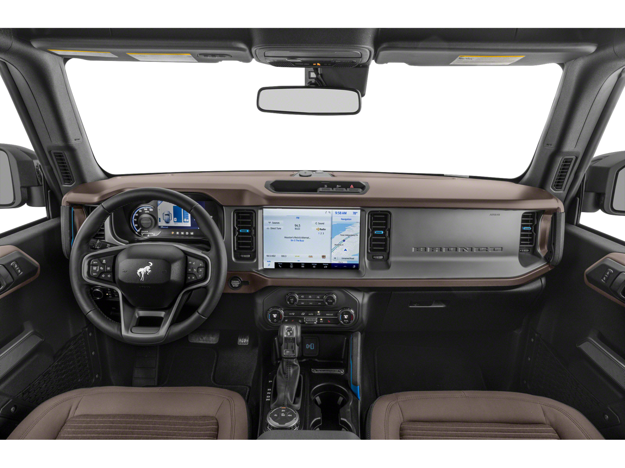 12 LCD Capacitive Touchscreen w/Swipe Capability, 18 Bright Machined Aluminum Wheels, 360-Degree Camera, 4-Wheel Disc Brakes, 4.27 Axle Ratio, 6 Speakers, ABS brakes, Additional Sound Deadening, Air Conditioning, Alloy wheels, AM/FM radio: SiriusXM with 360L, AM/FM Stereo, Auto High-beam Headlights, Auto-dimming Rear-View mirror, Automatic temperature control, Brake assist, Carbonized Gray Molded-In-Color Hard Top, Compass, Connected Navigation, Delay-off headlights, Driver door bin, Driver vanity mirror, Dual front impact airbags, Dual front side impact airbags, Electronic Stability Control, Emergency communication system: 911 Assist, Equipment Group 313A High Package, Exterior Parking Camera Rear, Ford Performance Heavy-Duty Modular Front Bumper, Front anti-roll bar, Front Bucket Seats, Front Center Armrest, Front dual zone A/C, Front fog lights, Front Parking Sensors, Front reading lights, Front Row Top Panels Storage Bag, Front wheel independent suspension, Fully automatic headlights, Hard Top Sound Deadening Headliner, Heated Cloth Bucket Seats, Heated door mirrors, Heated front seats, Illuminated entry, Information on Demand Panel, Integrated roll-over protection, Keyless Entry Keypad, Leather Shift Knob, Low tire pressure warning, Navigation system: Connected Navigation, Occupant sensing airbag, Outside temperature display, Overhead airbag, Overhead console, Panic alarm, Passenger door bin, Passenger vanity mirror, Power door mirrors, Power steering, Power windows, Radio data system, Rear-Window Defroster & Washer, Remote keyless entry, Security system, Sideview Mirrors, SiriusXM Radio w/360L, Speed control, Split folding rear seat, Steering wheel mounted audio controls, SYNC 4, Tachometer, Telescoping steering wheel, Tilt steering wheel, Traction control, Trip computer, Variably intermittent wipers, Voltmeter.