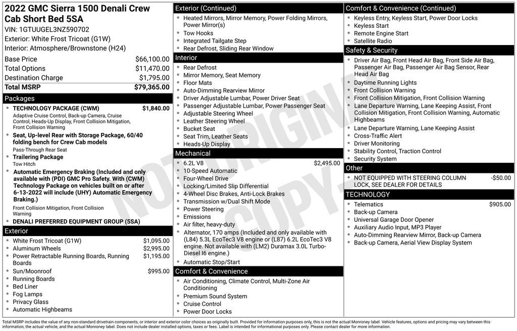 White Frost Tricoat 2022 GMC 4D Crew Cab Sierra 1500 Denali EcoTec3 6.2L V8 4WD