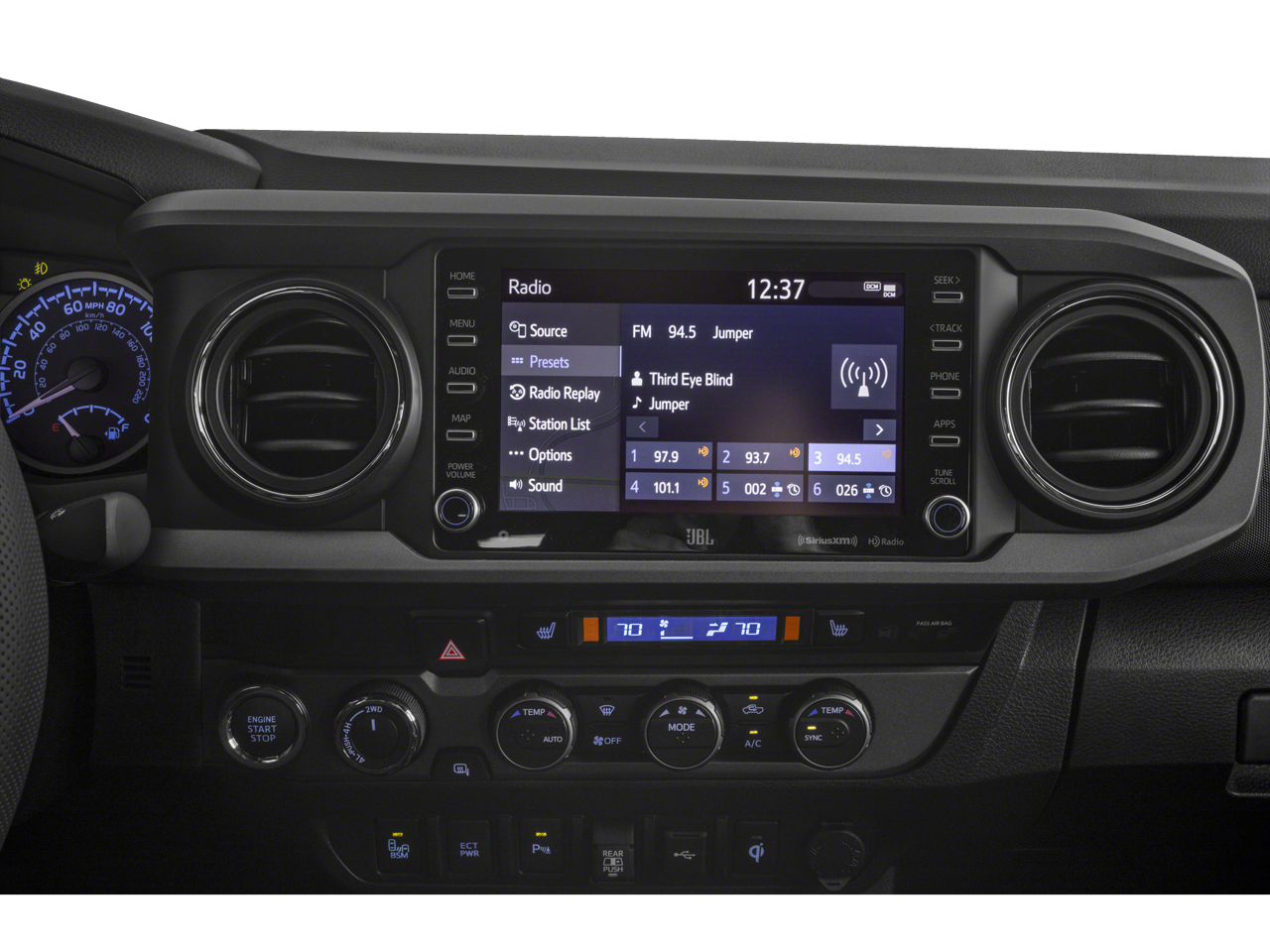 - Radio w/Seek-Scan, Clock, Speed Compensated Volume Control and Steering Wheel Controls