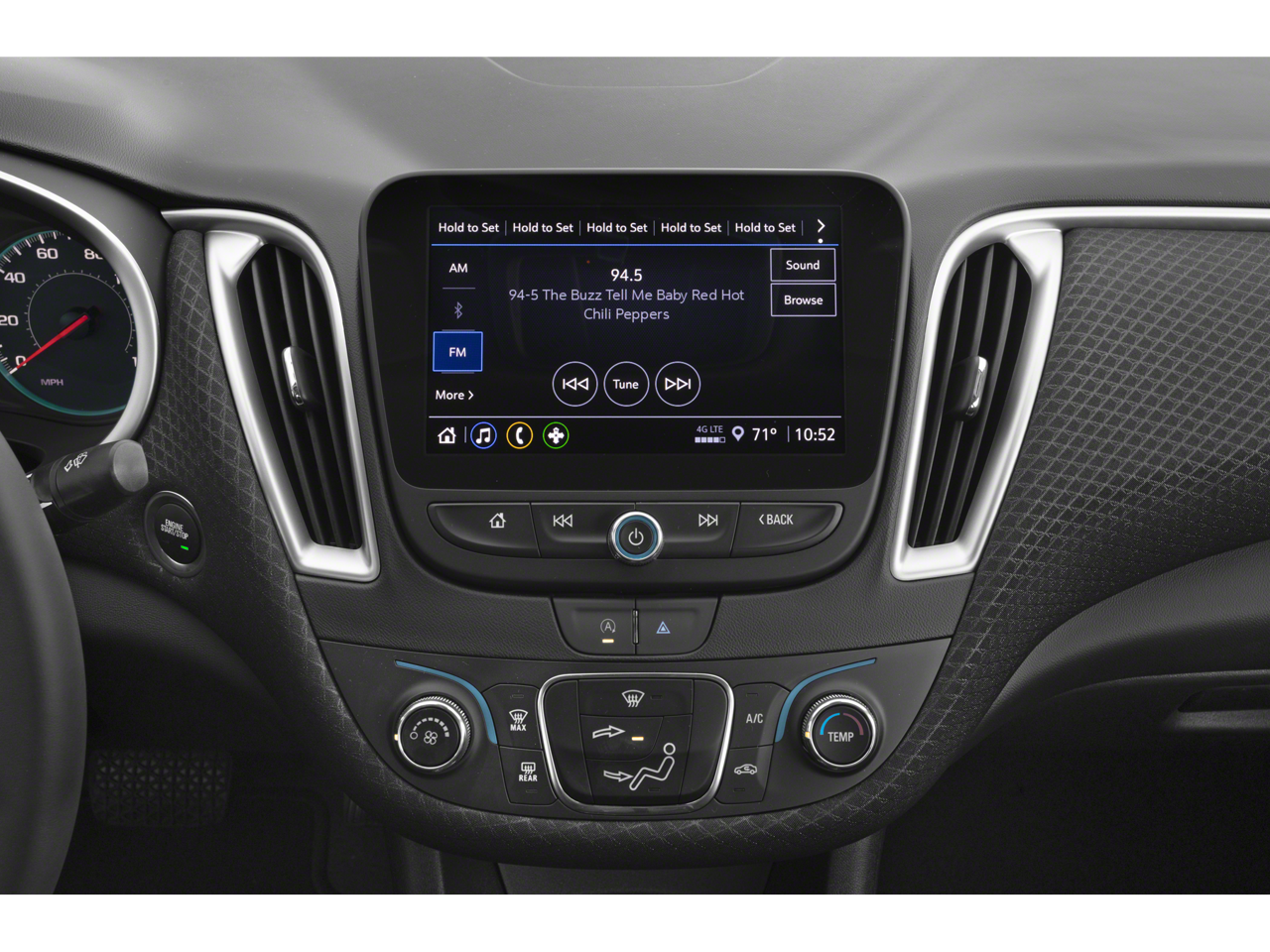 - Audio system, Chevrolet Infotainment 3 system, 8" diagonal color touchscreen, AM/FM stereo. Additional features for compatible phones include: Bluetooth audio streaming for 2 active devices, voice command pass-through to phone, Apple CarPlay and Android Auto capable.