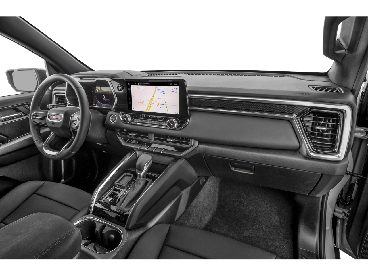 4WD, 1 Rear USB Ports in Center Console (Charge-Only), 120-Volt Bed Mounted Power Outlet, 2 1st Row USB Charge/Data Ports, 2 Rear USB Ports in Center Console (Charge-Only), 3.42 Rear Axle Ratio, 4-Way Manual Front Passenger Seat Adjuster, 4-Wheel Disc Brakes, 6 Speakers, 6-Speaker Audio System Feature, 6-Way Manual Driver Seat Adjuster, 8-Way Power Driver Seat Adjuster, ABS brakes, Air Conditioning, Alloy wheels, AM/FM radio: SiriusXM, Apple CarPlay/Android Auto, Auto High-beam Headlights, Automatic Emergency Braking, Automatic Locking Rear Differential, Automatic Stop/Start, Blind Zone Steering Assist, Brake assist, Bumpers: body-color, Canyon Pro Safety, Canyon Safety Plus Package, Cloth Seat Trim, Compass, Convenience Package, CoreTec Seat Trim, Delay-off headlights, Driver & Front Passenger Illuminated Visors, Driver door bin, Driver Mode Selector, Driver Seatback Map Pocket, Driver vanity mirror, Dual front impact airbags, Dual front side impact airbags, Dual-Zone Automatic Air Conditioning, Electronic Stability Control, Elevation Premium Package, EZ-Lift & Lower Tailgate, Following Distance Indicator, Forward Collision Alert, Front anti-roll bar, Front Bucket Seats, Front Center Armrest, Front LED Fog Lamps, Front Passenger Seatback Map Pocket, Front Pedestrian & Bicyclist Braking, Front wheel independent suspension, Heated Driver & Front Passenger Seats, Heated Power-Adjustable Outside Mirrors, Illuminated entry, Inside Rear-View Auto-Dimming Mirror, IntelliBeam Automatic High Beam On/Off, Interior Overhead Courtesy Light w/Dual Reading Lamp, Lane Keep Assist w/Lane Departure Warning, Low tire pressure warning, Manual Rear-Sliding Window, MultiStow Tailgate, Navigation System, Occupant sensing airbag, Outside temperature display, Overhead airbag, Overhead console, Panic alarm, Passenger door bin, Passenger vanity mirror, Power door mirrors, Power Driver Lumbar Control Seat Adjuster, Power steering, Power windows, Preferred Equipment Group 4VL, Preferred Package, Radio data system, Radio: 11.3 Diagonal Premium GMC Infotainment Sys, Rear Center Fold-Down Armrest w/2 Cupholders, Rear Cross Traffic Braking, Rear of Console 120-Volt Power Outlet, Rear reading lights, Rear step bumper, Rear-Window Electric Defogger, Remote keyless entry, Remote Vehicle Starter System, Security system, SiriusXM w/360L, Speed control, Speed-sensing steering, Split folding rear seat, Steering wheel mounted audio controls, Stop/Start System Disable Button Engine Control, Tachometer, Tailgate Keyed Cylinder Lock, Tilt & Telescopic Manual Steering Column, Tilt steering wheel, Traction control, Trip computer, Ultrasonic Rear Park Assist, Variably intermittent wipers, Wheels: 18 x 8.5 Dark Gray Painted Aluminum, Wireless Apple CarPlay/Wireless Android Auto, 4WD.
