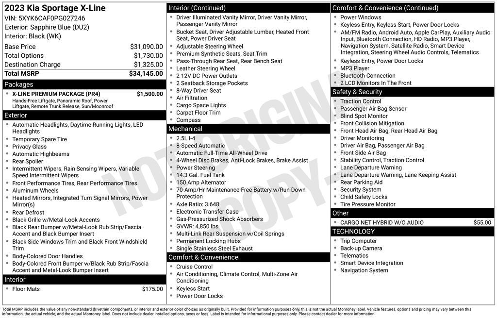 - Vehicle Name: Kia Sportage