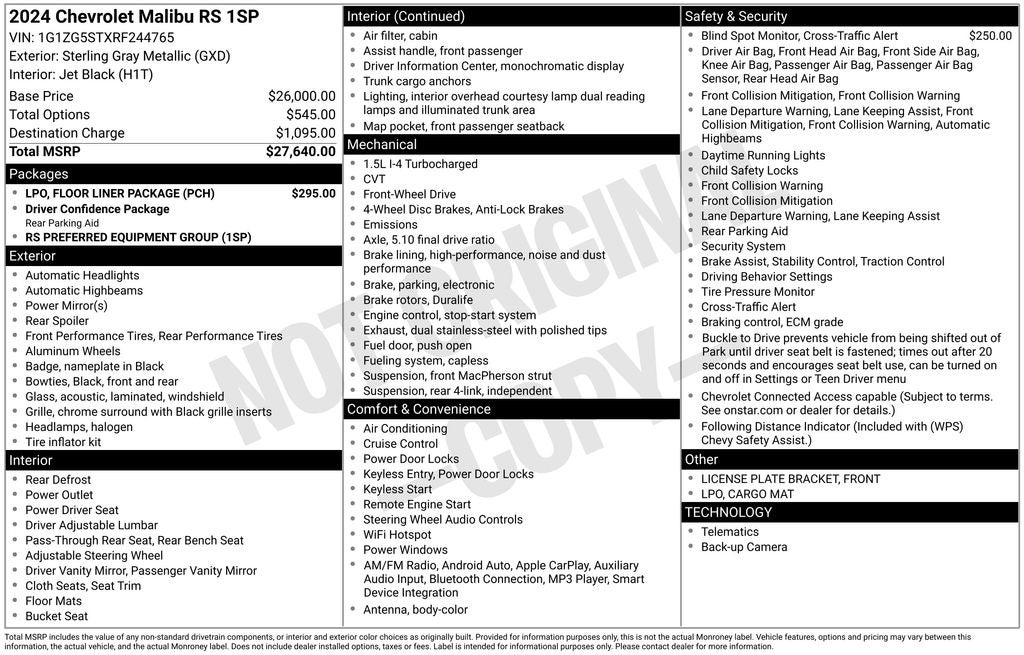 - Vehicle Name: Chevrolet Malibu