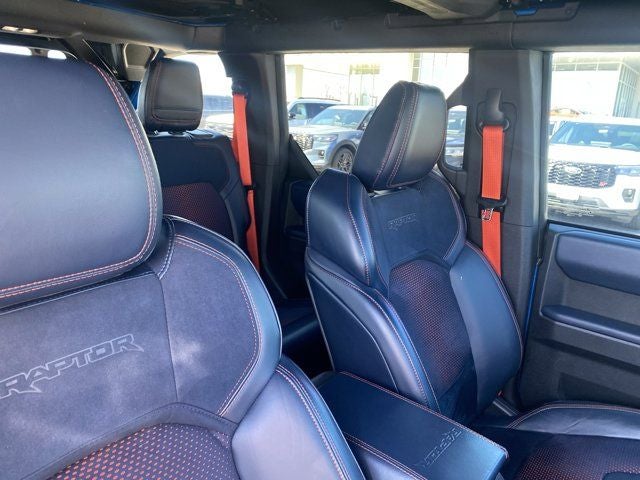 10 Speakers, 4-Wheel Disc Brakes, 4.7 Axle Ratio, ABS brakes, Air Conditioning, Alloy wheels, AM/FM radio: SiriusXM with 360L, Auto High-beam Headlights, Auto-dimming Rear-View mirror, Automatic temperature control, Body-Color Painted Sideview Mirror Caps, Brake assist, Code Orange Accent Seat Belts, Compass, Connected Navigation, Convertible HardTop, Convertible roof lining, Delay-off headlights, Driver door bin, Driver vanity mirror, Dual front impact airbags, Dual front side impact airbags, Electronic Stability Control, Emergency communication system: 911 Assist, Equipment Group 374A High/Lux Package, Exterior Parking Camera Rear, Front anti-roll bar, Front Bucket Seats, Front Center Armrest, Front dual zone A/C, Front fog lights, Front reading lights, Front wheel independent suspension, Fully automatic headlights, Garage door transmitter, Glass rear window, Heated door mirrors, Heated front seats, Heated steering wheel, Illuminated entry, Integrated roll-over protection, Interior Carbon Fiber Pack 6, Leather Shift Knob, Low tire pressure warning, Marine Grade Vinyl Bucket Seats, Navigation system: Connected Navigation, Occupant sensing airbag, Outside temperature display, Overhead airbag, Overhead console, Panic alarm, Passenger door bin, Passenger vanity mirror, Power door mirrors, Power steering, Power windows, Radio data system, Radio: B&O Sound System by Bang & Olufsen, Raptor Code Orange Appearance Package, Rear anti-roll bar, Rear seat center armrest, Rear window defroster, Rear window wiper, Remote keyless entry, Security system, SiriusXM Radio w/360L, Speed control, Split folding rear seat, Steering wheel mounted audio controls, SYNC 4, Tachometer, Telescoping steering wheel, Tilt steering wheel, Traction control, Trip computer, Turn signal indicator mirrors, Variably intermittent wipers, Voltmeter, Wheels: 17 Black High Gloss-Painted Aluminum, Wheels: 17 Dark Carbonized Gray Alloy Painted.